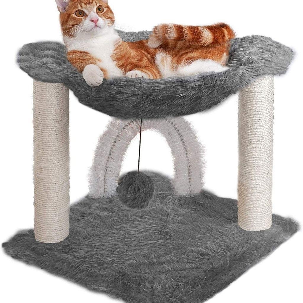 • DESIGNED FOR CATS: The small cat playground features a swipeable hanging plush ball toy and a super cozy hammock-style perch that provides a super cozy nestling and burrowing space for cats